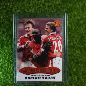 & Free ShippingThis is the 2002 Topps Manchester United ‘Unbeaten Runs’ card, a standout collectible from the 2002 Topps Manchester United series. This card celebrates and commemorates the legendary club’s historic achievements and significant ‘unbeaten runs’ throughout their storied history, making it a must-have for any Manchester United fan or soccer card collector.