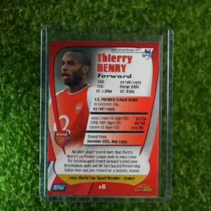 & Free ShippingThis card features legendary footballer Thierry Henry from the 2002 Topps series. A highly sought-after collectible showcasing the iconic striker in his prime.