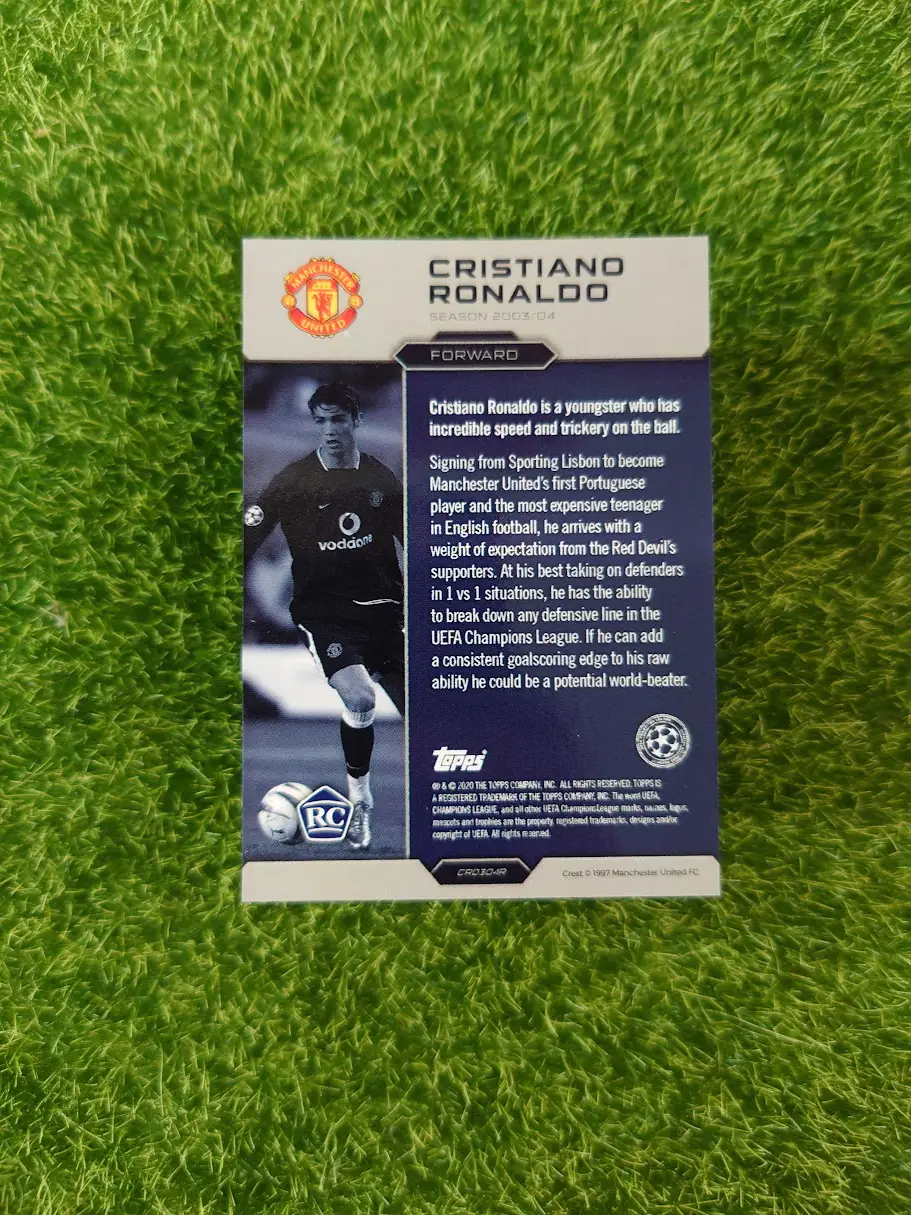 A true holy grail of modern sports cards. This is the 2004 Topps Champions League Cristiano Ronaldo rookie card. This card marks the debut of a player who would go on to become one of the greatest of all time. It is a must-have for any serious sports card investor or football fan. This iconic card captures Ronaldo during his first spell at Manchester United, at the very beginning of his legendary career. An essential, investment-grade piece of football history.