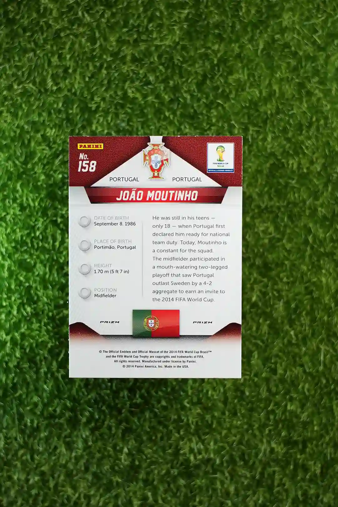 This is a 2014 Panini Prizm trading card featuring João Moutinho.