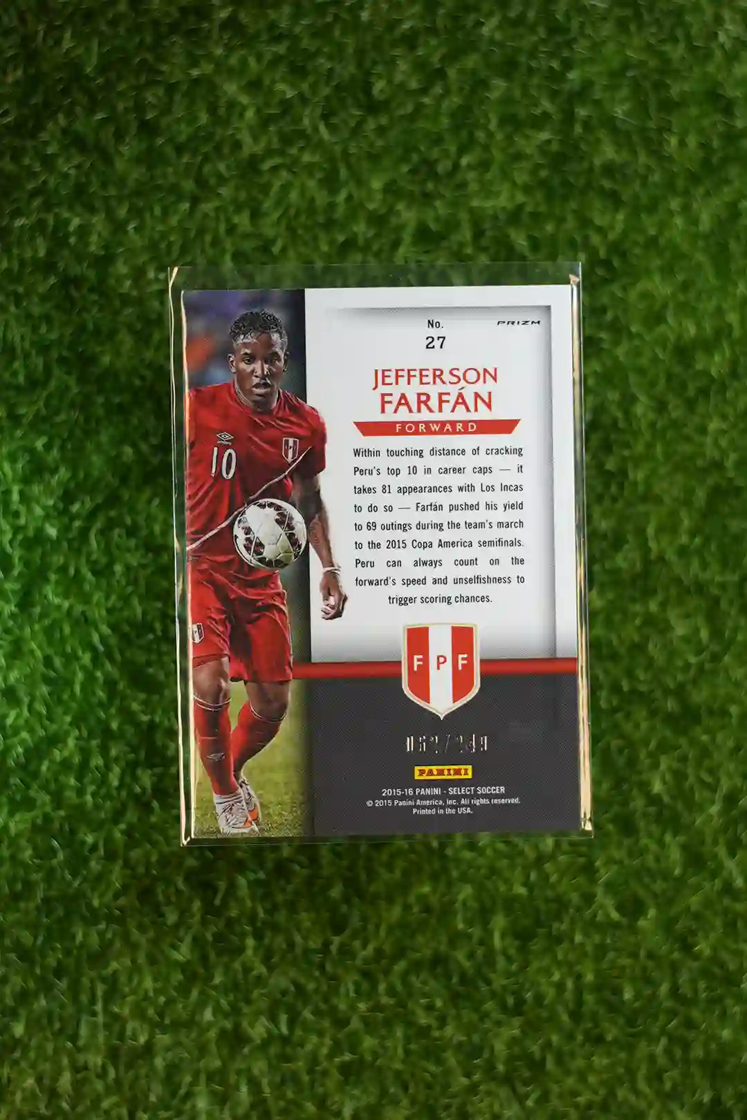 & Free Shipping2015-16 Select Soccer Jefferson Farfán National Pride Orange parallel card, limited to 199 copies.