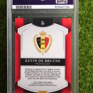 Add a key card of a midfield maestro to your collection with the 2016-17 Panini Select Kevin De Bruyne Silver Prizm. Panini Select is a premium brand known for its tiered base set and beautiful Prizm parallels. This card features Kevin De Bruyne, arguably the best midfielder of his generation, in the classic Silver Prizm finish. The 2016-17 season was a key period in De Bruyne’s career as he established himself as the creative force for Manchester City. This Silver Prizm is a foundational card for any KDB collector and a shining example of the quality of the Panini Select brand.