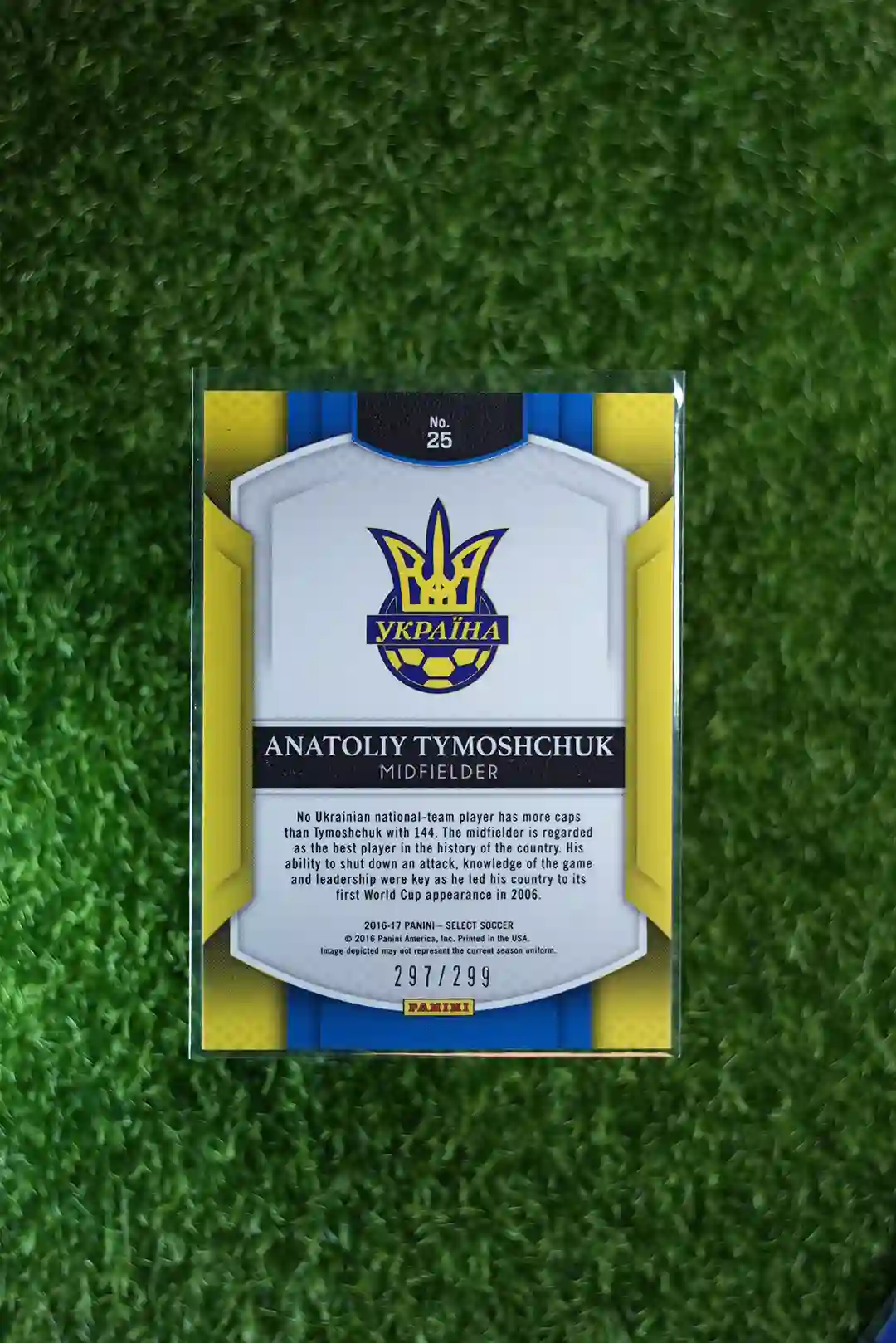 & Free ShippingThis is a 2016-17 Panini Select Soccer Anatoliy Tymoshchuk Blue Prizm parallel card, numbered to 299.