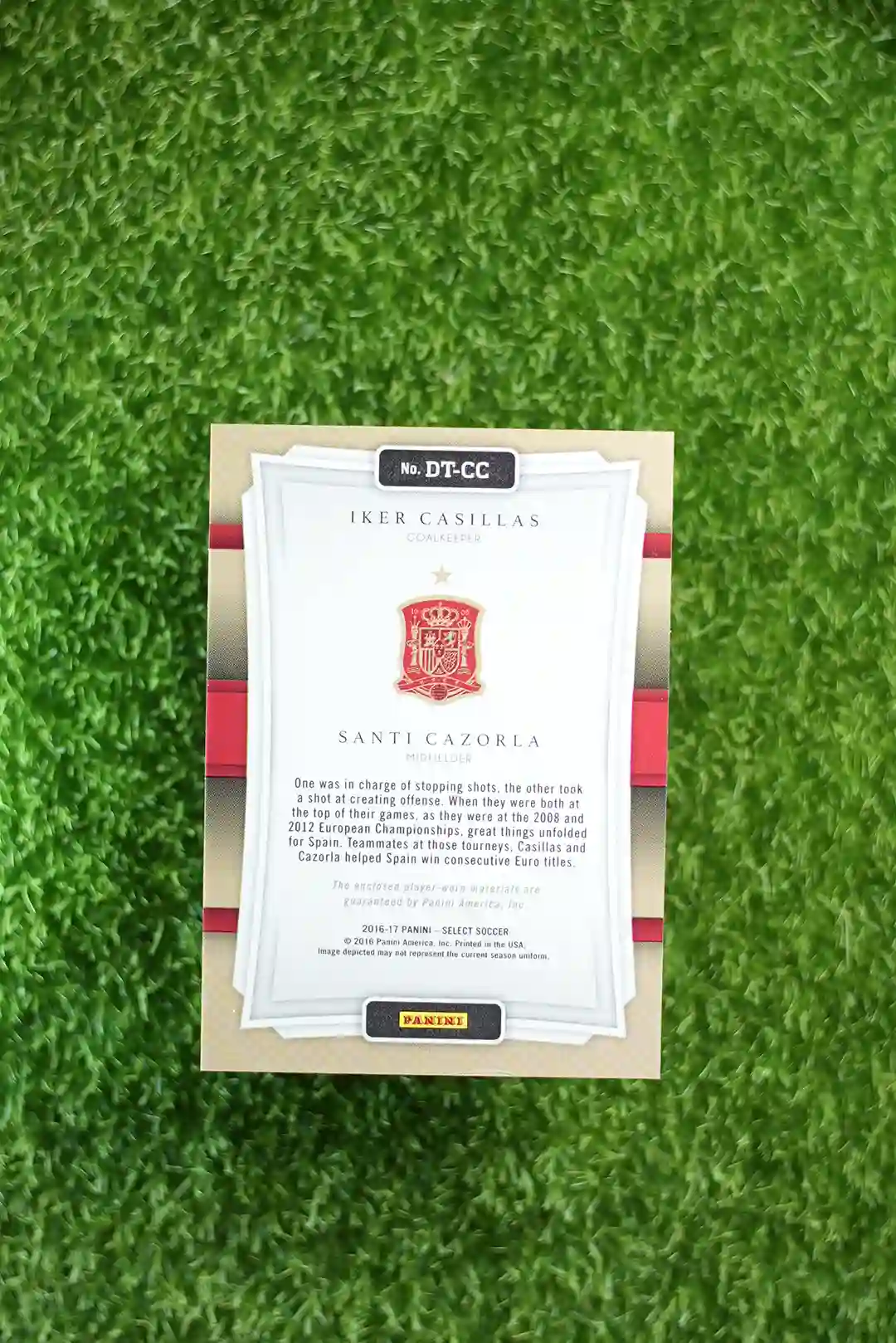 & Free Shipping2016-17 Panini Select Soccer Double-Team Memorabilia card featuring Iker Casillas and Santi Cazorla (DT-CC).