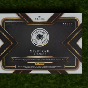 An incredibly rare and beautiful memorabilia card! This is the 2017-18 Panini Select Mesut Özil X-Fractor Memorabilia Gold, numbered 01/10. This card combines a piece of player-worn memorabilia with the stunning X-Fractor technology and the highly sought-after Gold parallel. The result is a visually spectacular card with a tiny print run of just 10. As the first card in the run, it’s a true collector’s gem. Panini Select is a fan-favorite brand, and this high-end, limited memorabilia card is a perfect example of why. It’s a must-have for any serious Mesut Özil collector.
