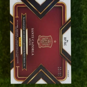 A fantastic memorabilia card featuring a unique design, this is the 2017-18 Panini Select Santi Cazorla X-Fractor Memorabilia Red parallel, numbered to a limited 50 copies. This card combines a piece of authentic player-worn material from Santi Cazorla with the eye-catching X-Fractor pattern. The Red parallel adds another layer of rarity and visual appeal. Panini Select’s memorabilia cards are always well-designed, and this piece is a great way to feel closer to the game. It’s a wonderful collectible for any admirer of Cazorla’s artistry on the pitch and his time lighting up the Premier League.