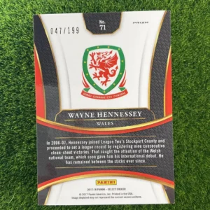 Capture the passion of Welsh football with this 2017-18 Panini Select Wayne Hennessey Red Prizm parallel. This card features the veteran Wales international goalkeeper on the vibrant and sought-after Red Prizm parallel. The Panini Select series is a cornerstone of the hobby, and this card is a numbered limited edition, 47 out of 199. It’s a fantastic collectible for any supporter of the Welsh national team, Crystal Palace, or any collector of the popular Select brand.