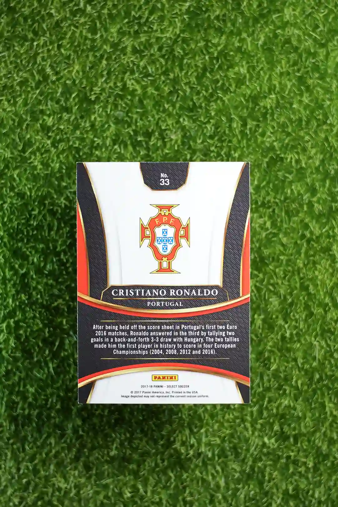 This is the 2017-18 Panini Select Soccer base card featuring Cristiano Ronaldo, card number 33.