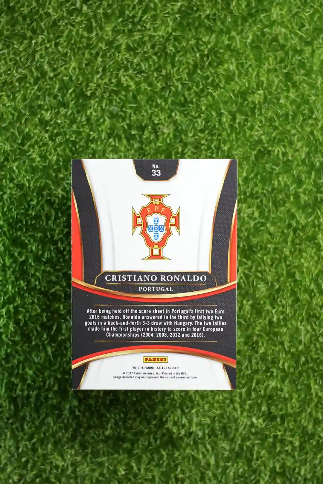 This is the 2017-18 Select Soccer Base card for legendary player Cristiano Ronaldo, card number 33.