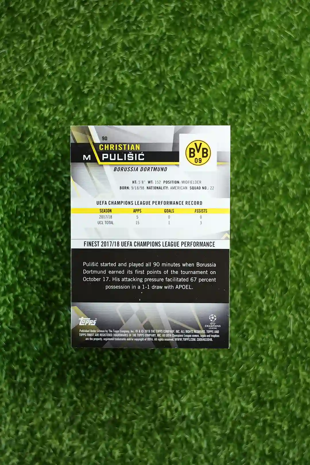 / 2017-18 Topps Finest UEFA Champions League Christian Pulisic Base #90