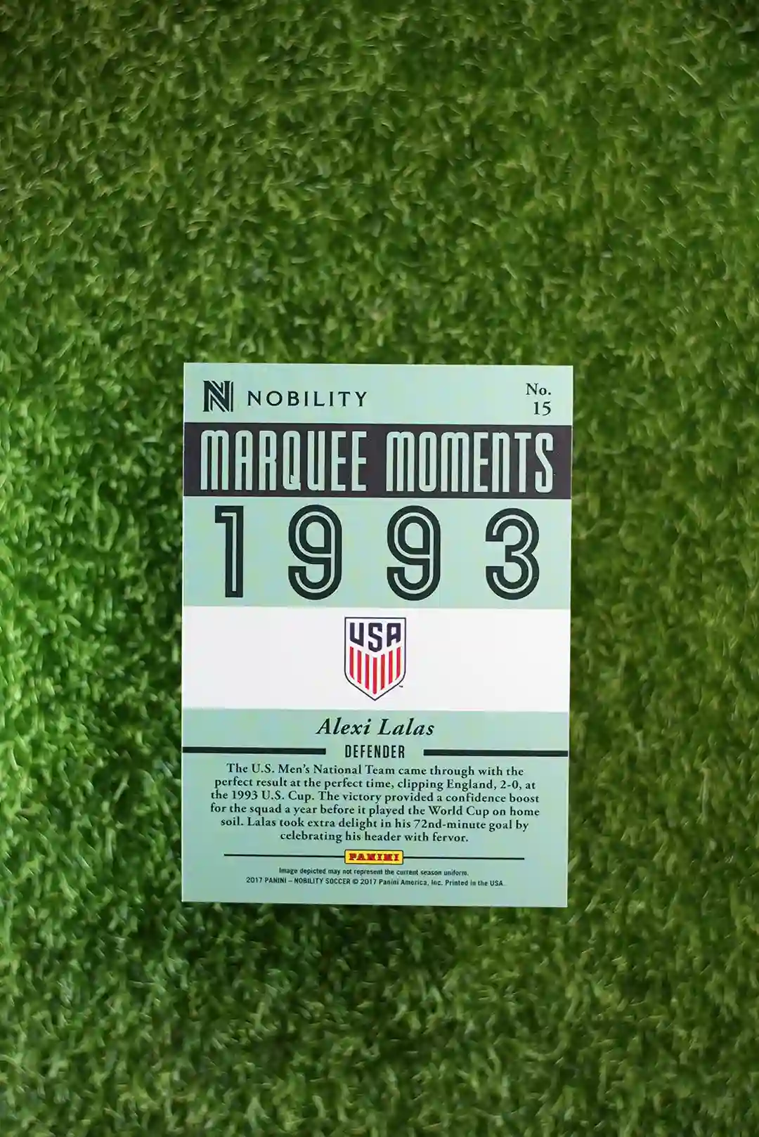 This listing is for the 2017 Marquee Moments Alexi Lalas trading card.