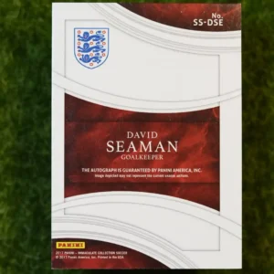 Another premium autograph of an Arsenal legend! This is the 2017 Panini Immaculate Collection David Seaman Autograph, numbered to 50. This card from the high-end Immaculate set offers a more accessible way to own a limited, on-card signature from the legendary goalkeeper. The design is clean and elegant, putting the focus on the player and his signature. For collectors who appreciate the quality and class of the Immaculate brand, this is a fantastic card. It’s a beautiful tribute to David Seaman’s incredible career and his status as an Arsenal icon.