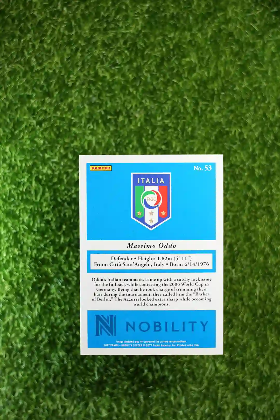 2017 Panini Nobility Soccer Massimo Oddo Base card, with a print run of /10.