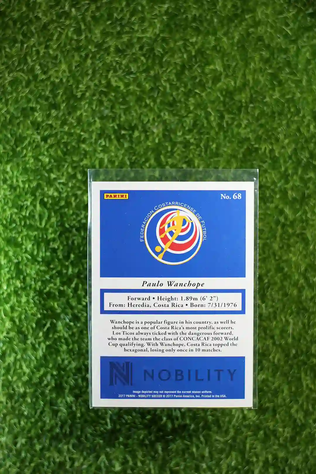 This is a 2017 Panini Nobility Soccer Paulo Wanchope Base card, numbered out of 99.