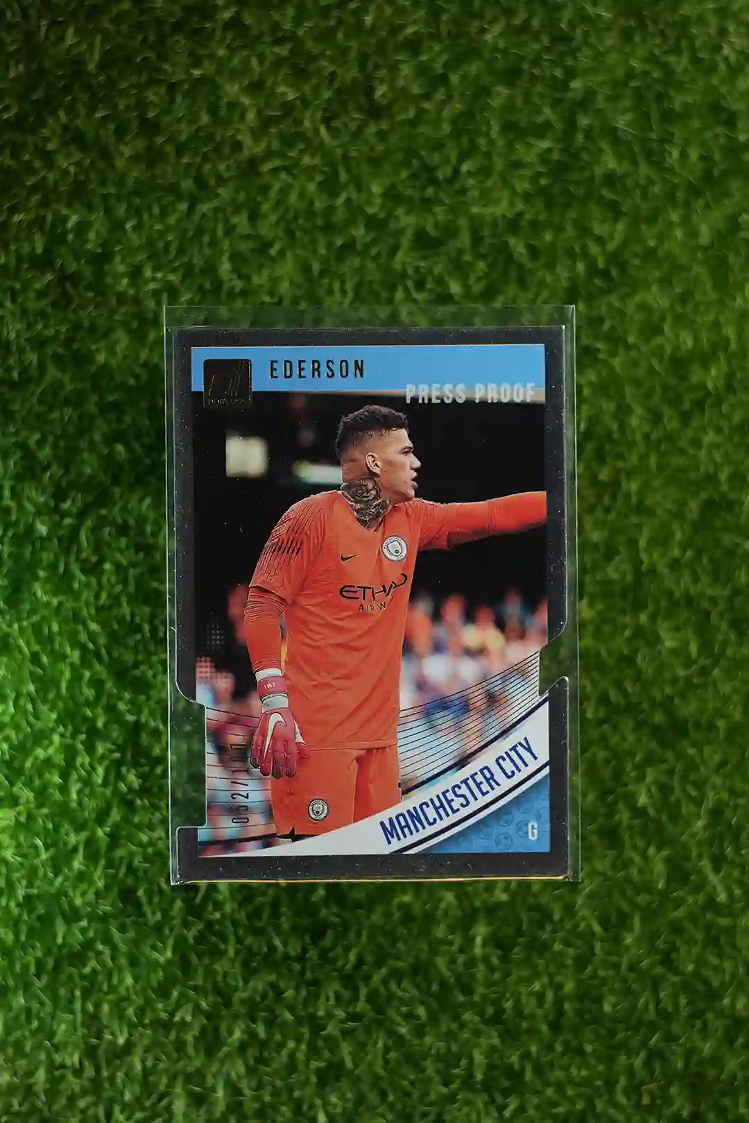 & Free ShippingA 2018-19 Donruss Ederson Press Proof trading card. This highly collectible card features Brazilian goalkeeper Ederson Moraes and is a distinct Press Proof parallel from the popular Donruss series.