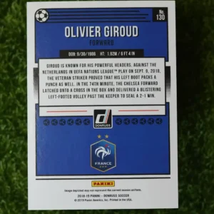 Another opportunity to own a limited Gold parallel! This is another copy of the 2018-19 Panini Donruss Olivier Giroud Press Proof Gold, this one numbered 32/75. Having multiple copies of a numbered parallel is a great way to build a deep player collection. This card is a fantastic tribute to Olivier Giroud’s consistent goal-scoring record and his success at the highest levels of the game. For any fan of the French striker, this is a great-looking and relatively scarce card to add to their collection.