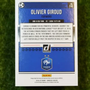 A vibrant parallel of a World Cup winner! This is the 2018-19 Panini Donruss Olivier Giroud Press Proof Purple. The Panini Donruss brand is a classic in the hobby, and the ‘Press Proof’ parallels are a longtime collector favorite. This Purple version is a great-looking card that adds a splash of color to the base design. It features the French striker Olivier Giroud, a player who has achieved incredible success at both the club and international level. For fans of the player, this is a fun and affordable parallel to add to their collection.