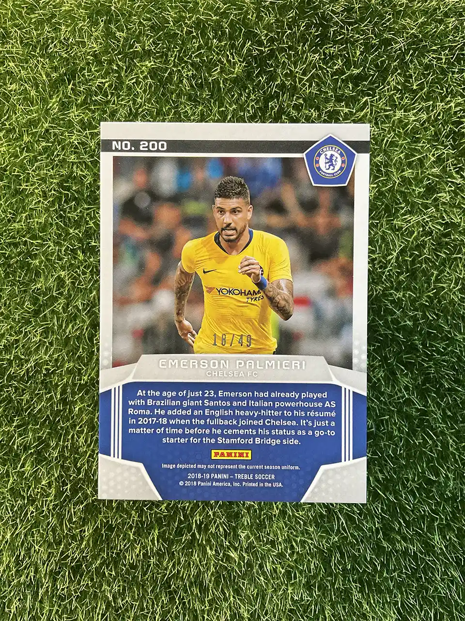 & Free ShippingThis Emerson Palmieri rookie card from the 2018-19 Panini Treble Soccer series features a Purple parallel. This limited edition card is numbered 16/49.