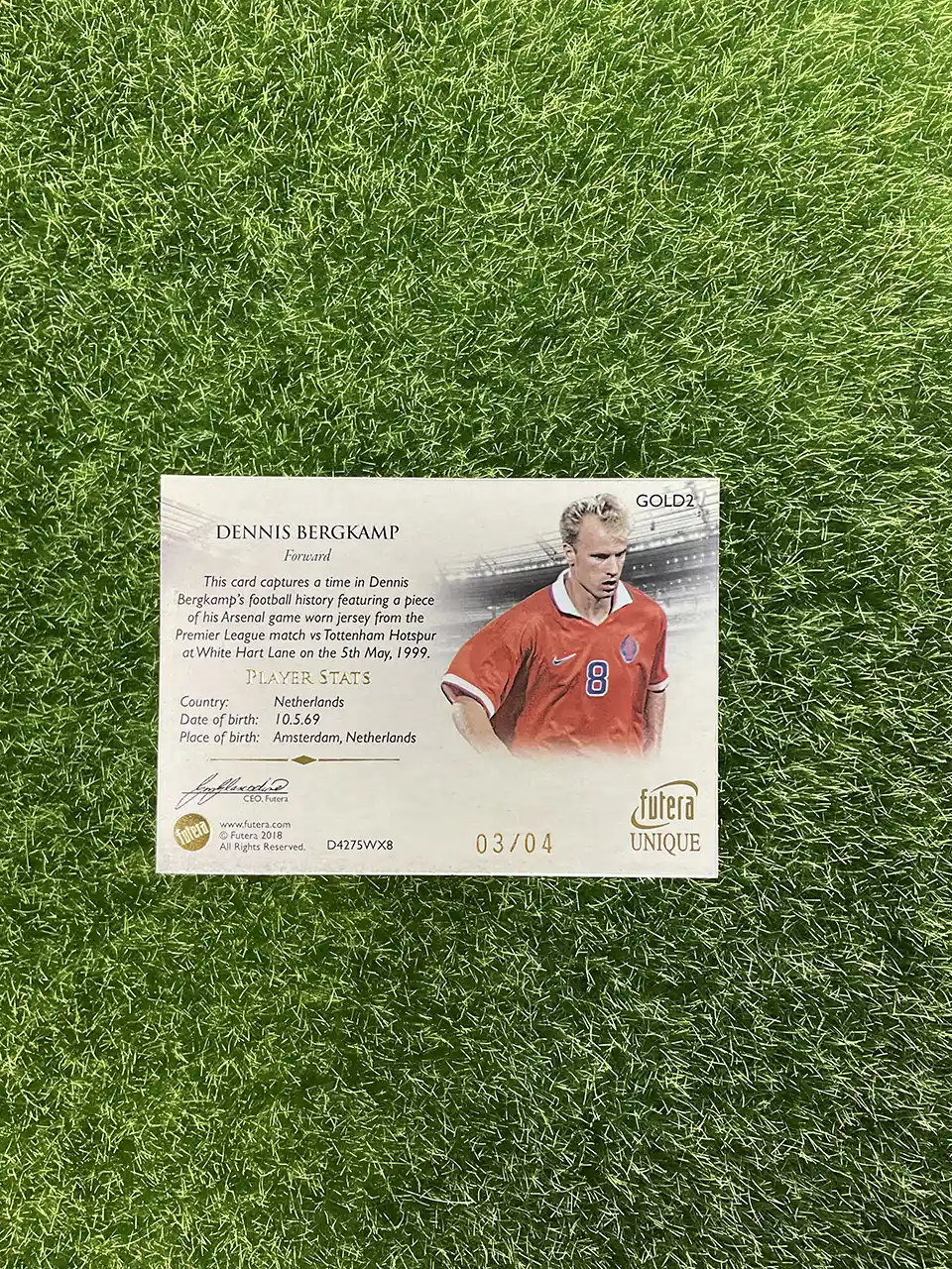Tags: 2018 Futera Unique, Arsenal, Dennis Bergkamp, Memorabilia, Netherlands National Team, Numbered /4, Patch