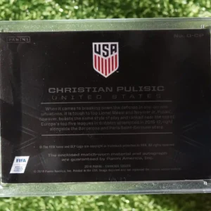 The ultimate grail for a Christian Pulisic collector! This is the 2018 Panini Eminence Christian Pulisic Optimum Patch Auto 1/1. A “one of one” card is the rarest and most desirable card possible. This masterpiece from the ultra-premium Panini Eminence brand features a certified on-card autograph from Christian Pulisic, alongside a massive, multi-color patch piece. The ‘Optimum’ patch autos are known for their incredible patch windows. This is more than just a card; it’s a significant investment and a piece of art. It’s the pinnacle for any Christian Pulisic collection.