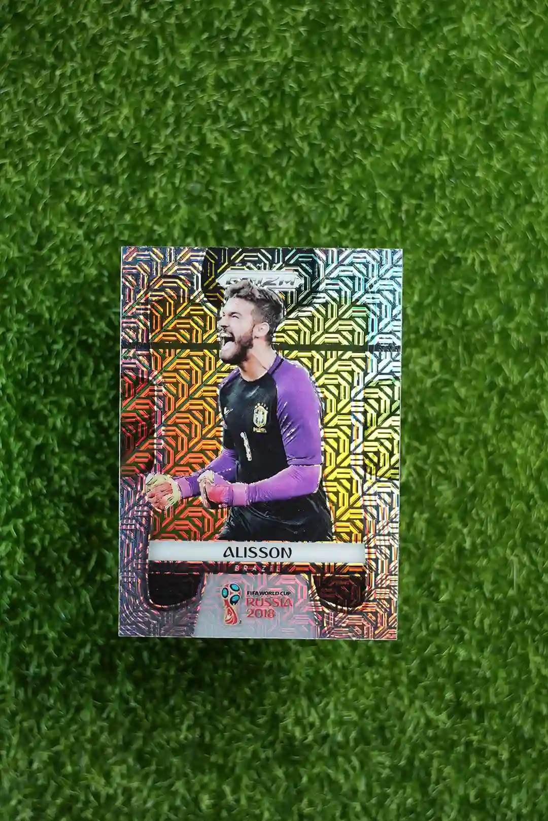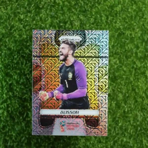 This is the 2018 Panini Prizm World Cup Soccer base card featuring Alisson Becker, card number 37.