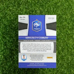 & Free Shipping2018 Panini Prizm World Cup Soccer Kingsley Coman Base Card #79, numbered to 99 copies.