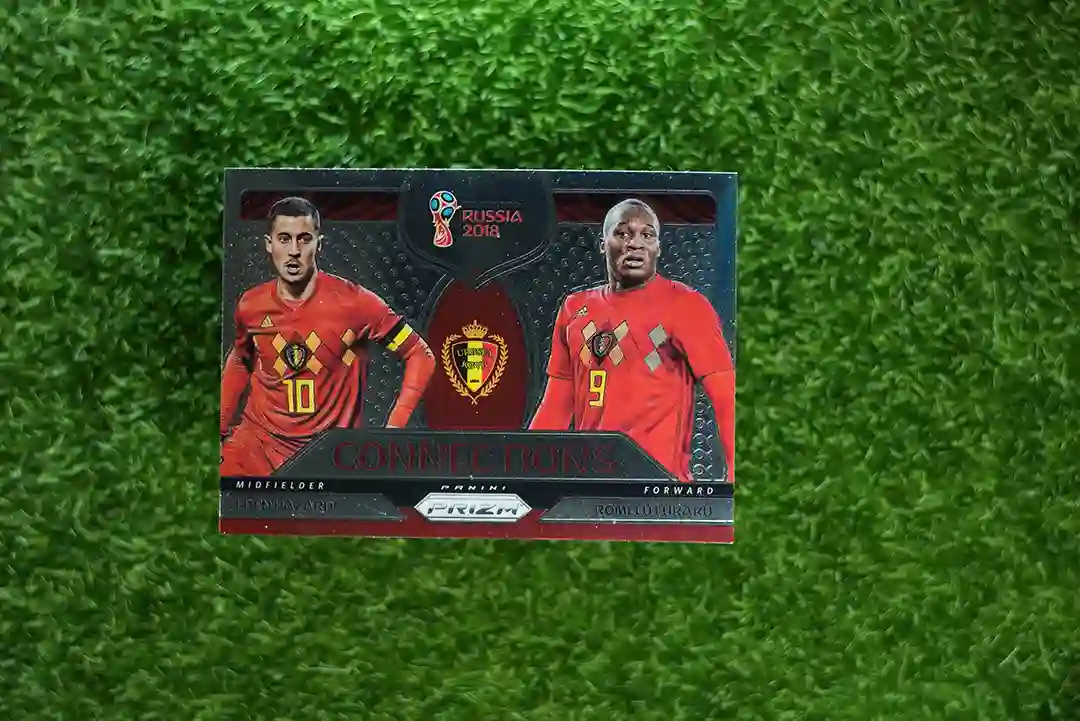 & Free Shipping2018 Prizm Connections card #1 of 2 featuring Eden Hazard and Romelu Lukaku.