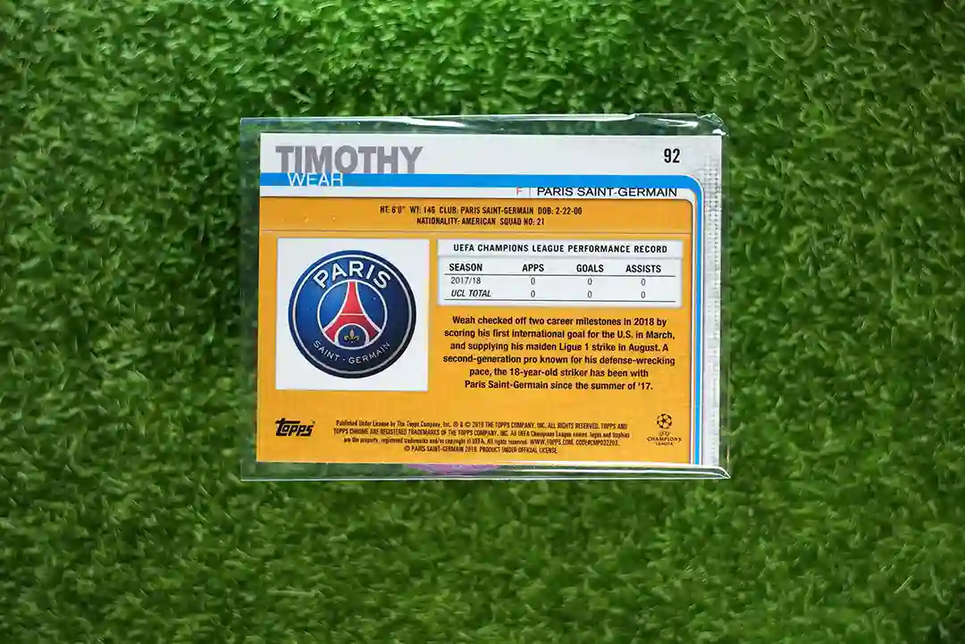2018 Topps Chrome Champions League Timothy Weah Base Card.