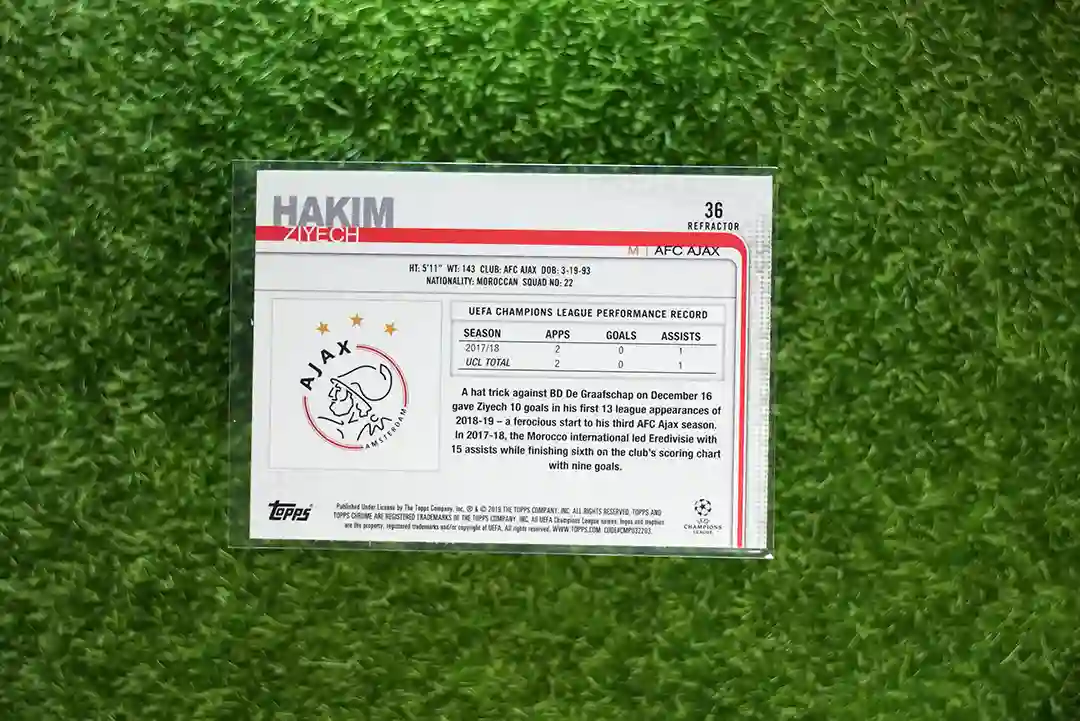 & Free ShippingThis is a 2018 Topps Chrome UEFA Champions League Refractor card featuring star player Hakim Ziyech.