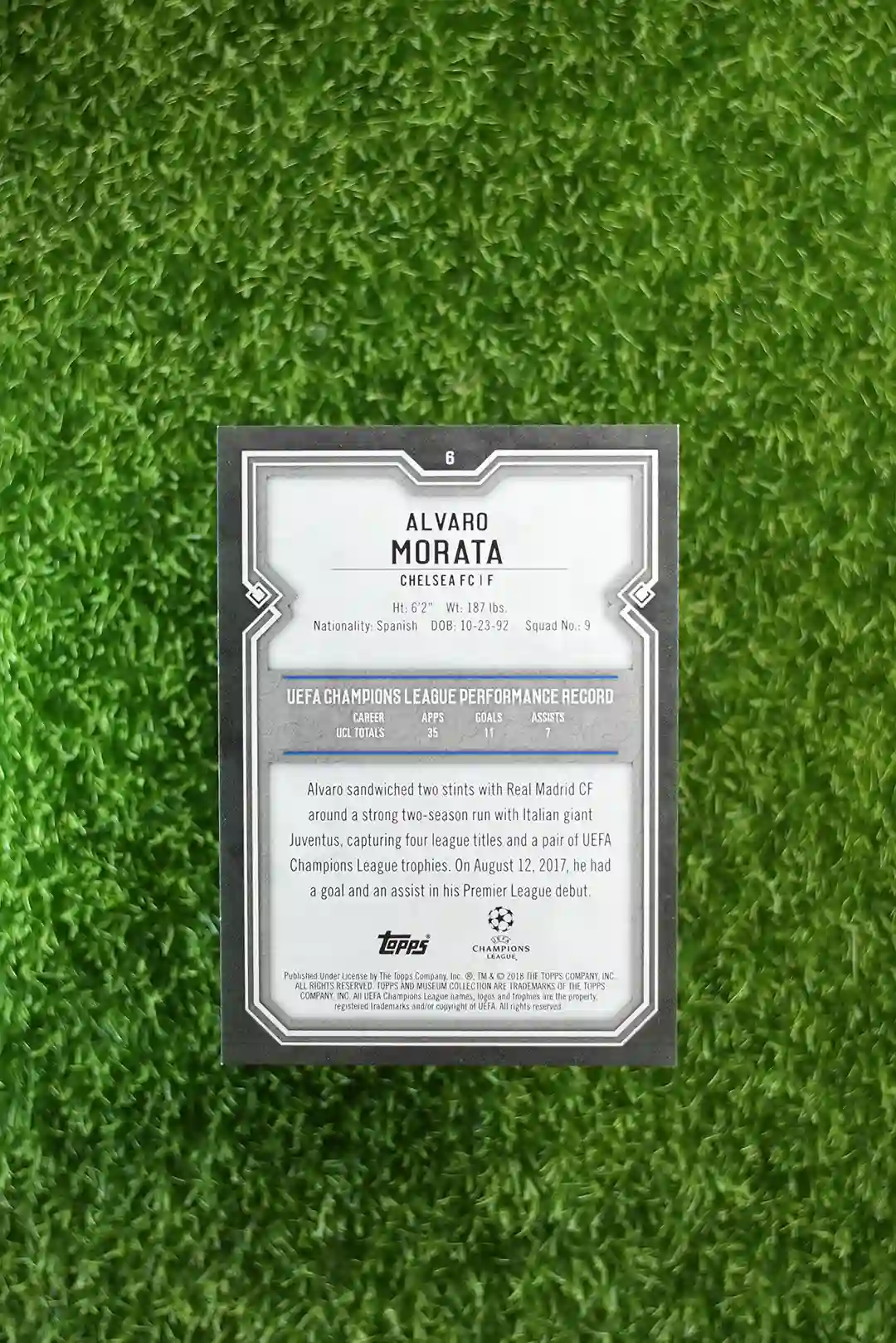 This listing is for the 2018 Topps Museum Collection card featuring soccer star Alvaro Morata.