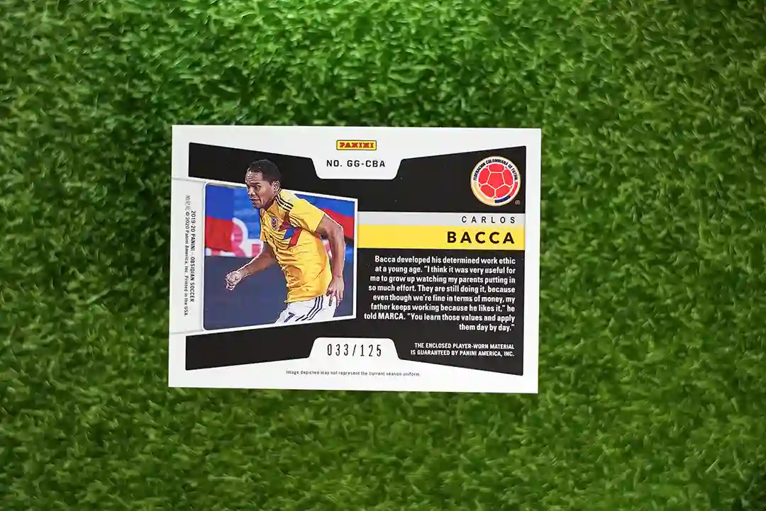 2019-20 Obsidian Soccer Carlos Bacca Galaxy Gear card, numbered to 125 copies.