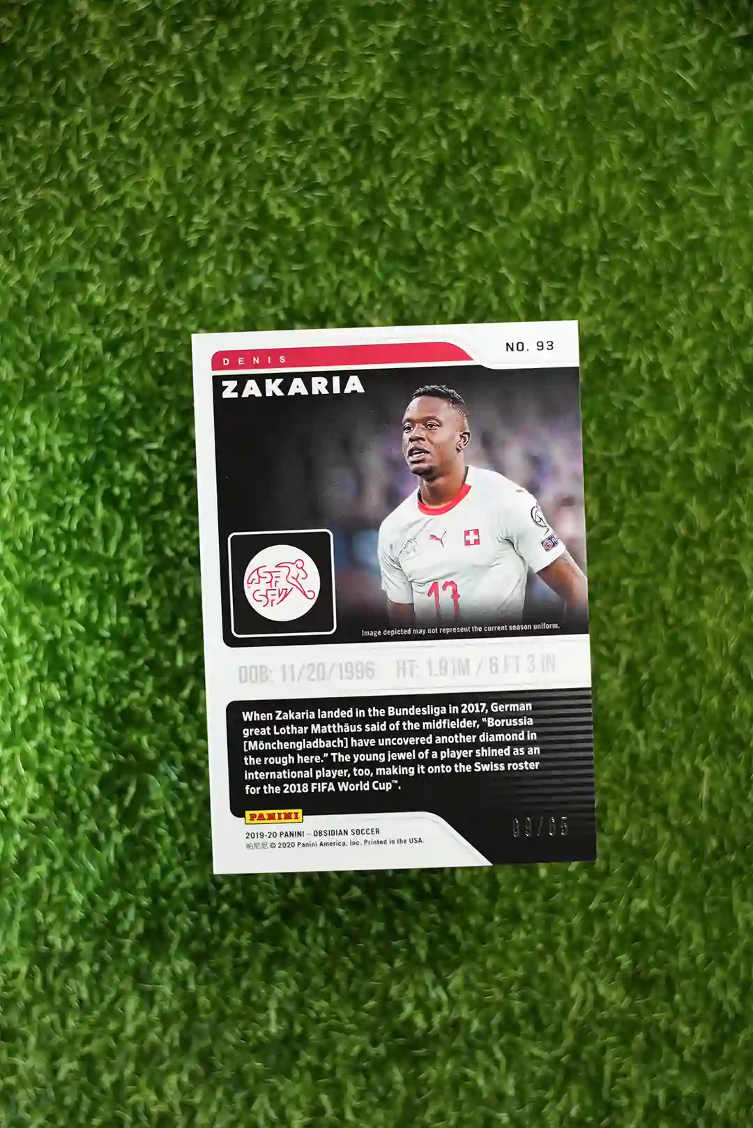 2019-20 Obsidian Soccer Denis Zakaria Base card, numbered to 25.
