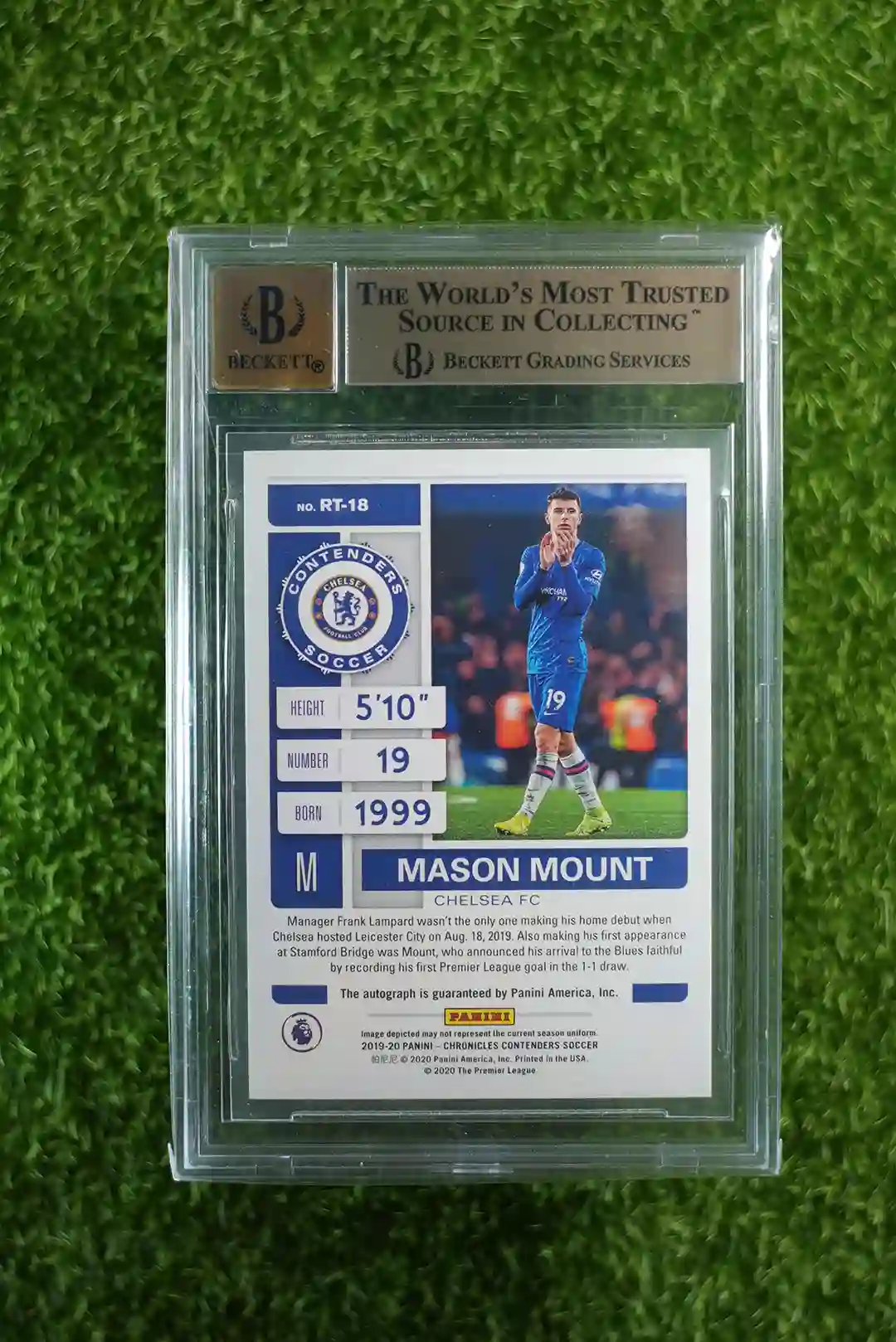 2019-20 Panini Contenders Soccer Soccer Mason Mount Rookie Ticket Cracked Ice Rookie Card, Cracked Ice Parallel, Autograph 18/23, #18, BGS 95