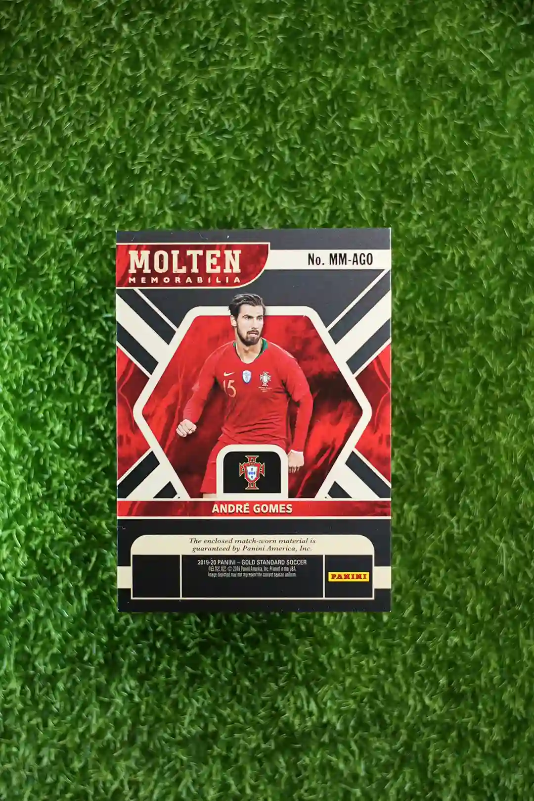 & Free Shipping2019-20 Panini Gold Standard Soccer card featuring André Gomes from the Molten Memorabilia insert.