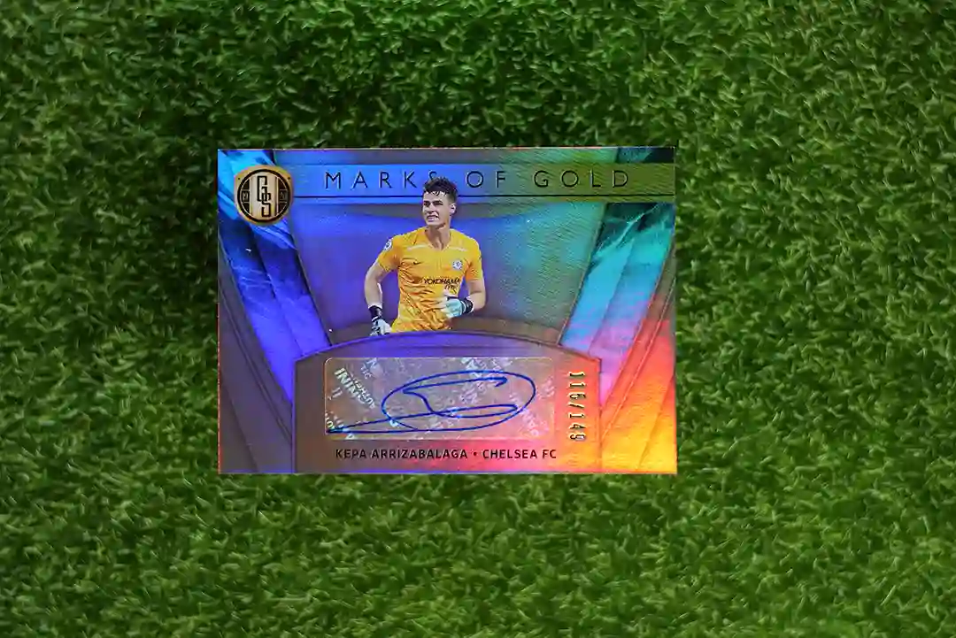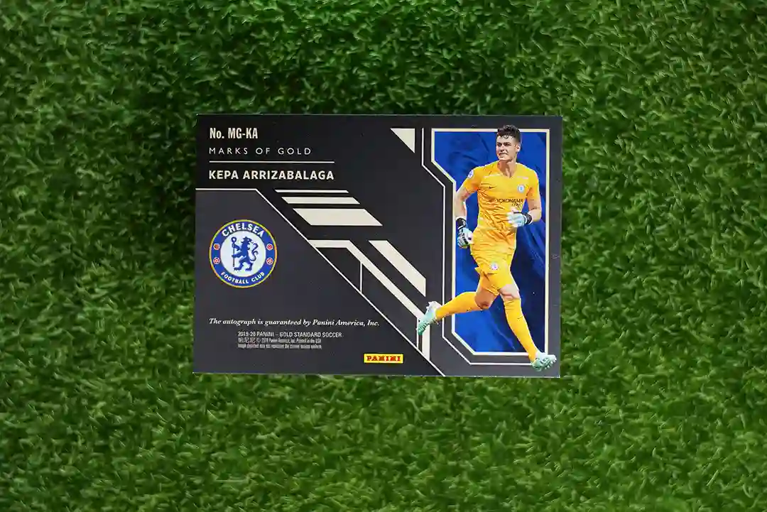 & Free Shipping2019-20 Panini Gold Standard Soccer Kepa Arrizabalaga Marks of Gold Autograph card, serial numbered to 149.
