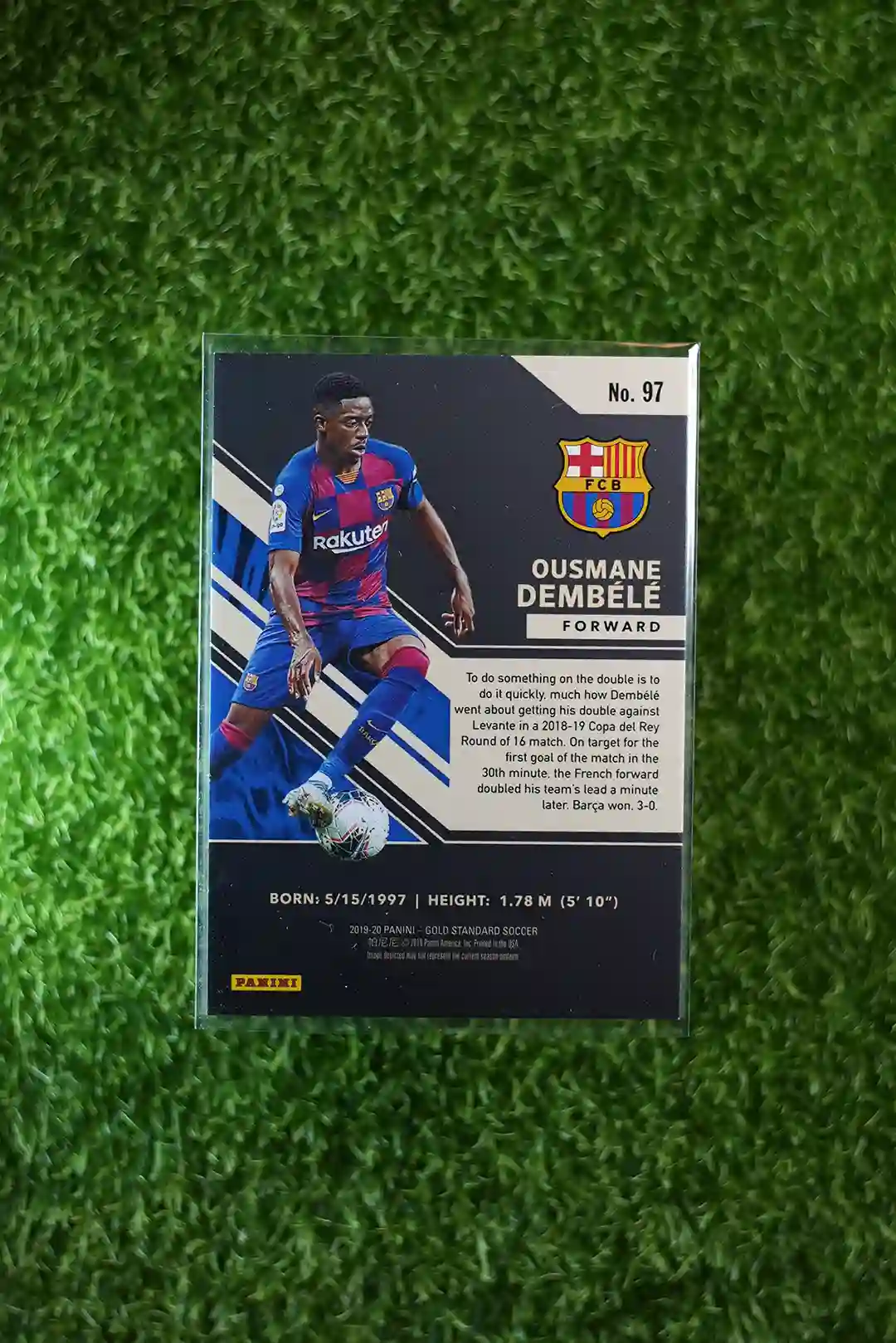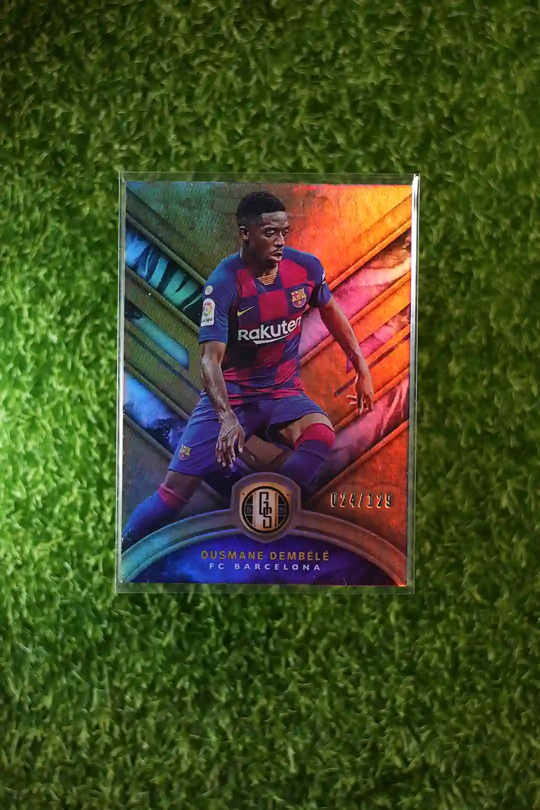 2019-20 Panini Gold Standard Soccer Ousmane Dembélé #97, serial numbered out of 129.