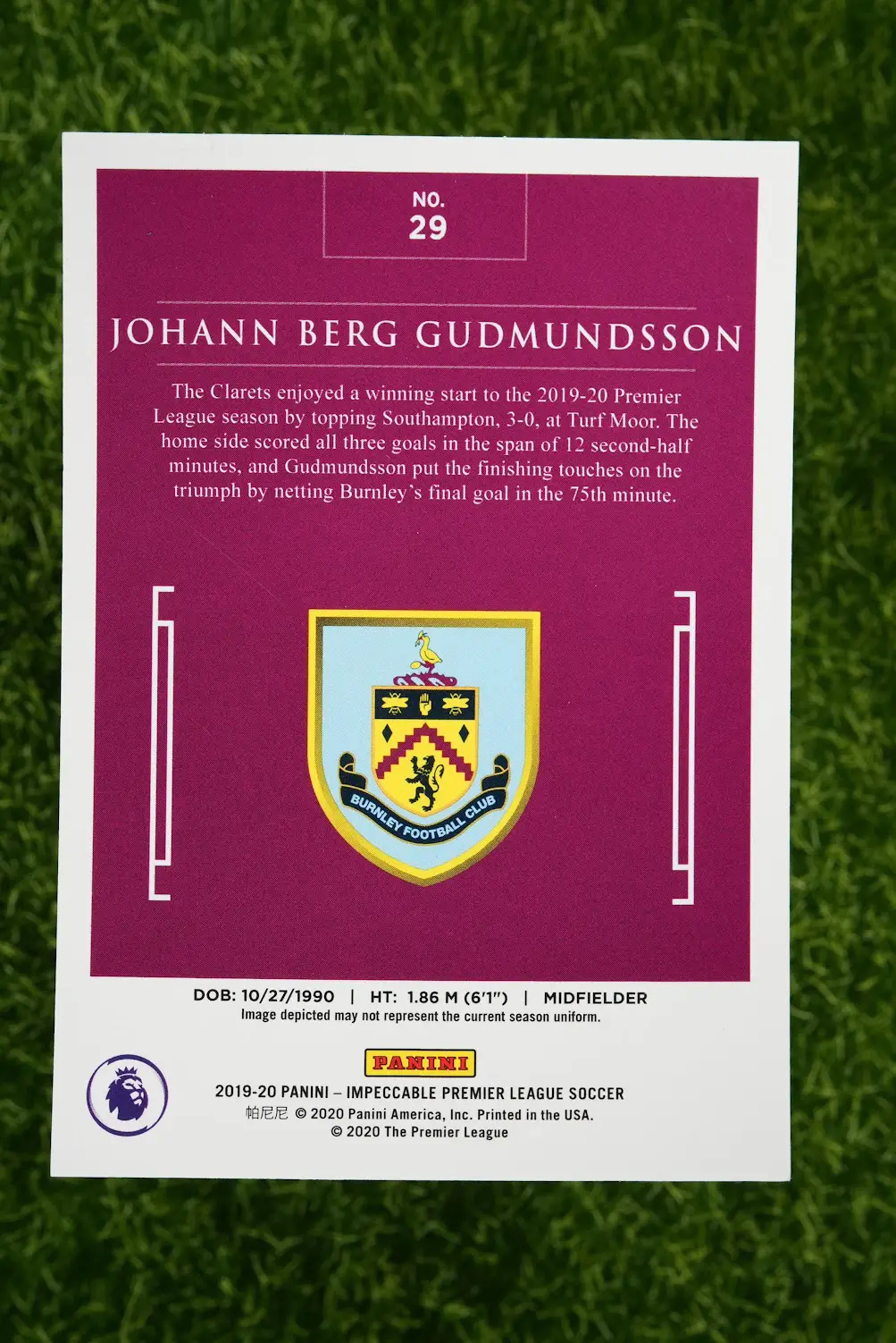 Tags: 2019-20 Panini Impeccable, Burnley, Iceland National Team, Johann Berg Gudmundsson, Numbered /5