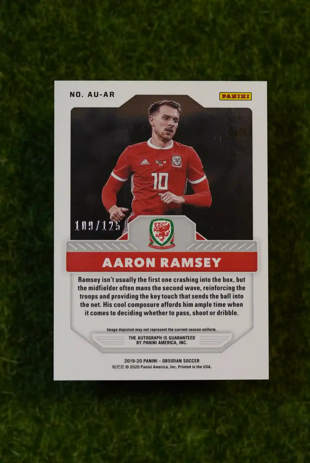Tags: 2019-20, Aaron Ramsey, Arsenal, Aurora, Autograph, Juventus, Obsidian, Panini, Serial Numbered, Wales