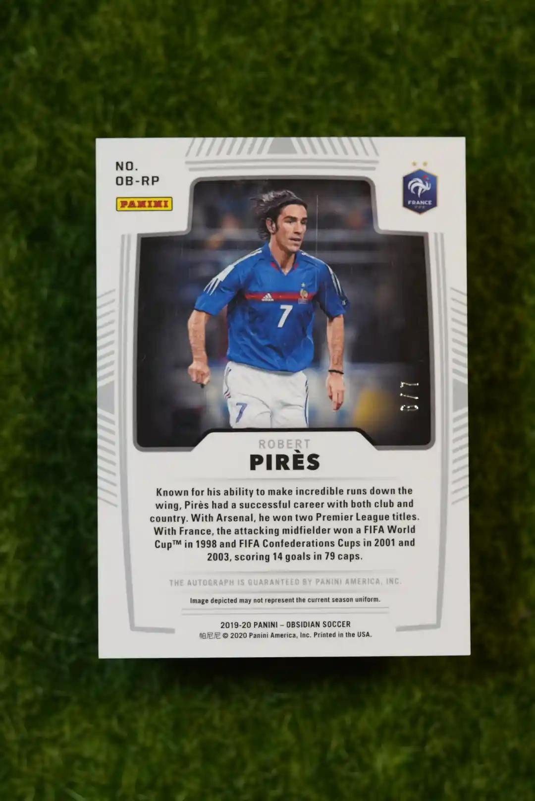 Tags: 2019-20, Arsenal, Autograph, France, Obsidian, Panini, Robert Pires, Serial Numbered, Villarreal