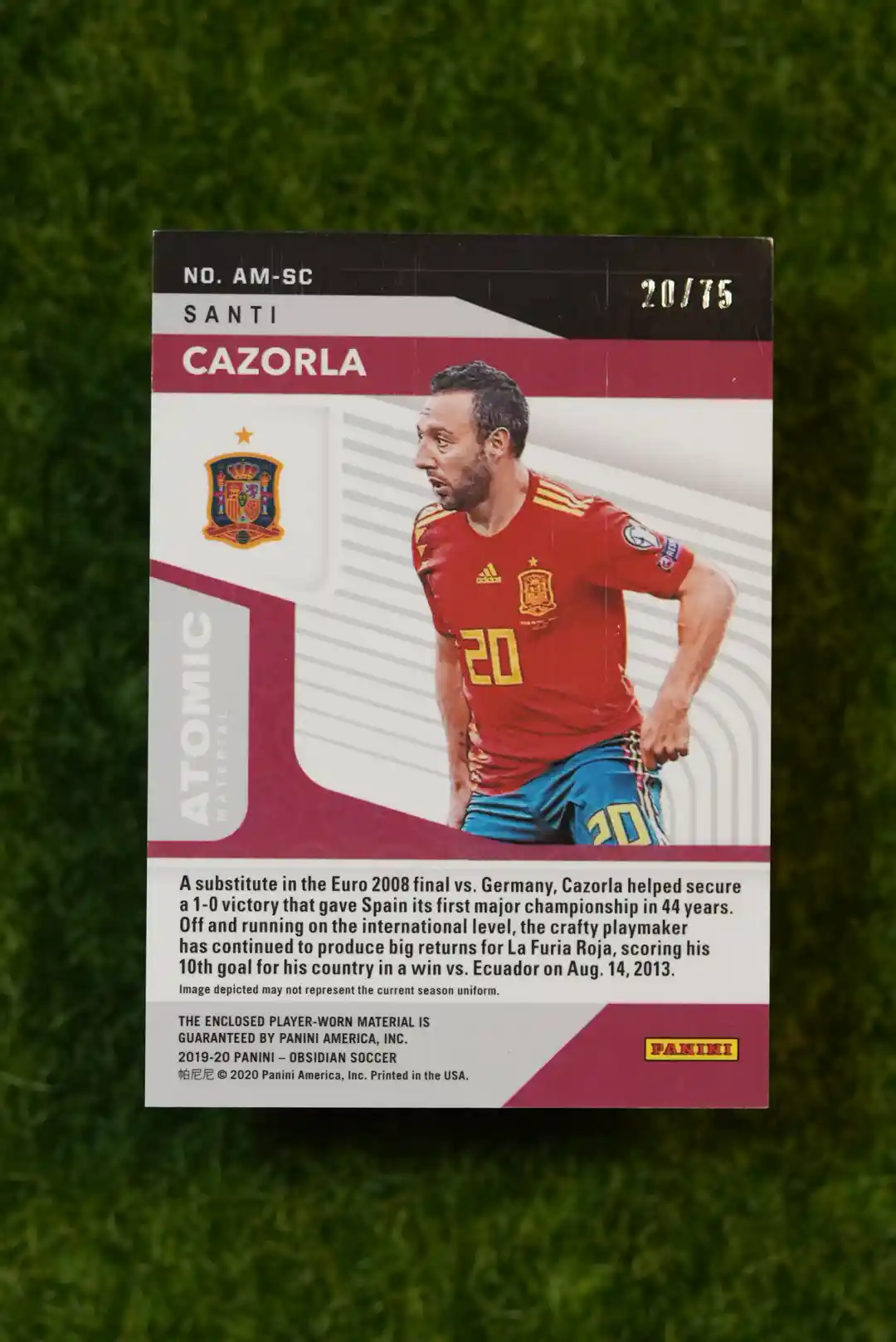 Tags: 2019-20, Arsenal, Atomic Material, Blue Parallel, Memorabilia, Obsidian, Panini, Santi Cazorla, Serial Numbered, Spain, Villarreal