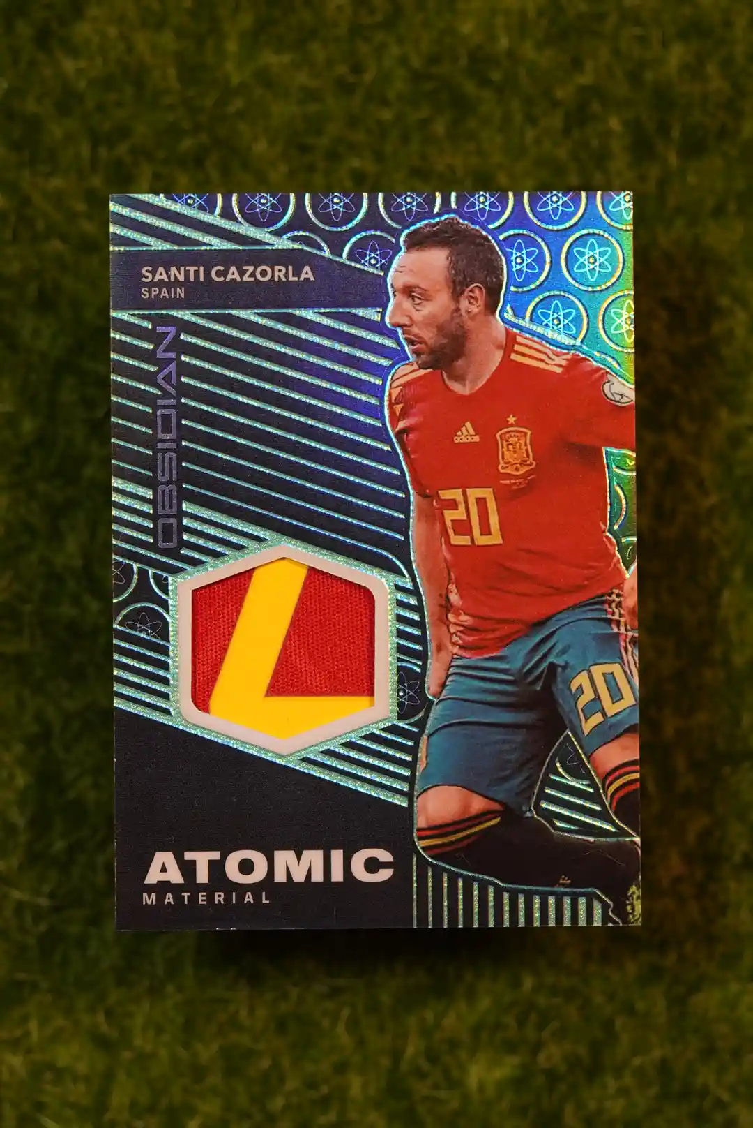 Tags: 2019-20, Arsenal, Atomic Material, Memorabilia, Obsidian, Panini, Red Parallel, Santi Cazorla, Serial Numbered, Spain, Villarreal