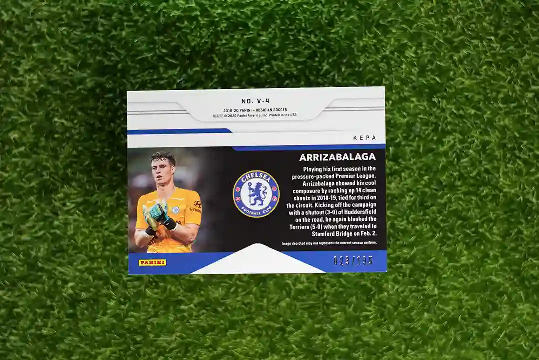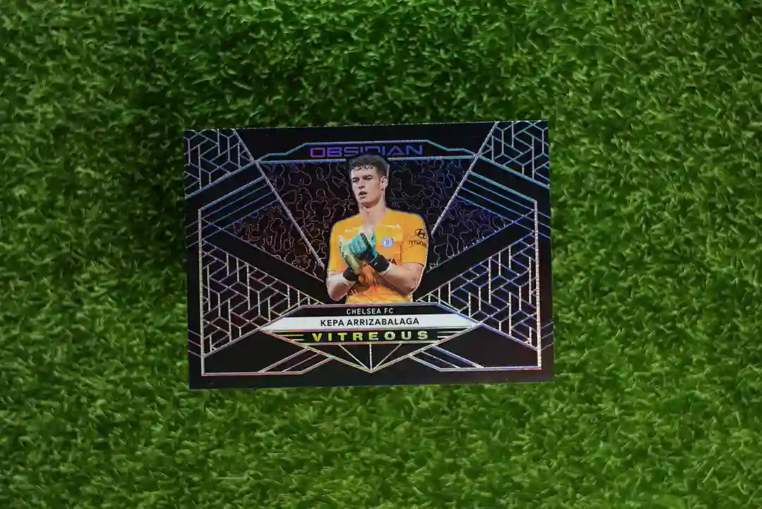 2019-20 Panini Obsidian Soccer Kepa Arrizabalaga Vitreous insert card, limited to 130 copies.
