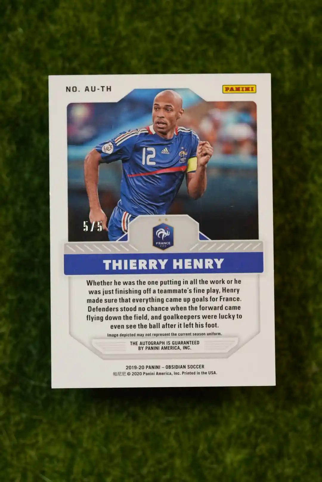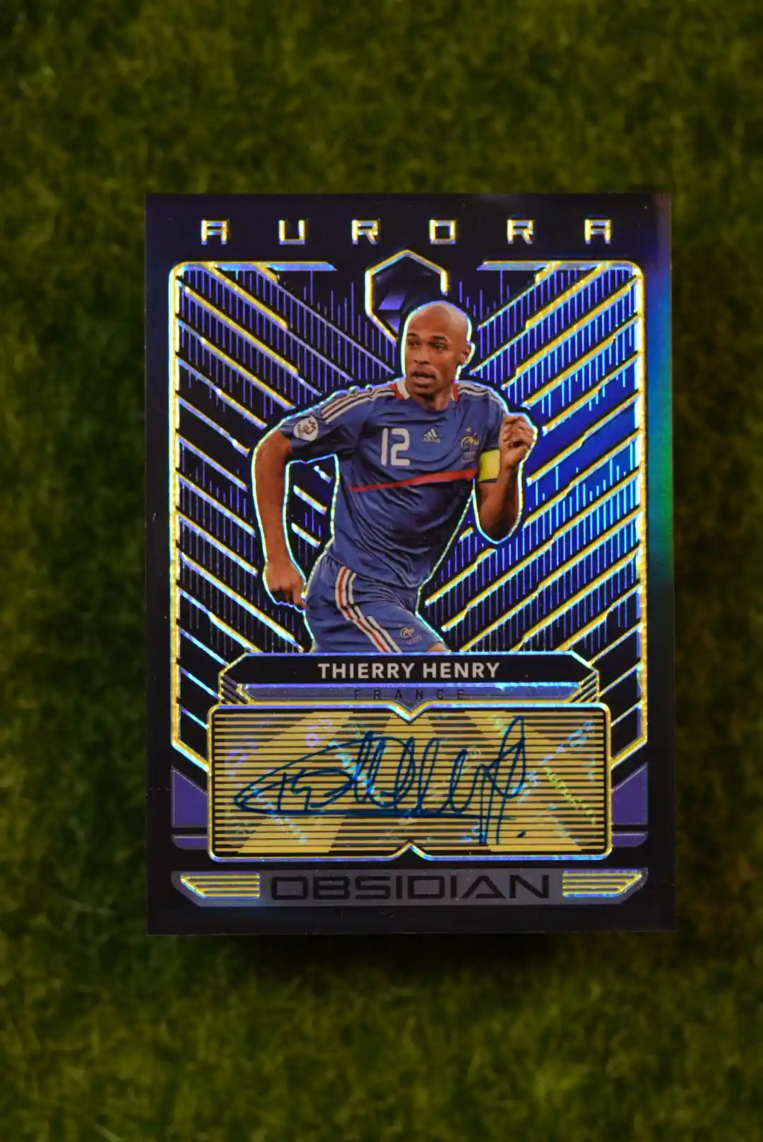 An incredibly rare autograph of a footballing god! This is the 2019-20 Panini Obsidian Thierry Henry Aurora Yellow Auto, with a minuscule print run of just 5 copies. The ‘Aurora’ autographs from the Panini Obsidian set are known for their beautiful, ethereal designs. The Yellow parallel is one of the rarest, making this a true “grail” card for any Thierry Henry or Arsenal collector. An on-card autograph from the French legend is always in high demand, and this stunning, extremely limited version is a centerpiece for any high-end collection.
