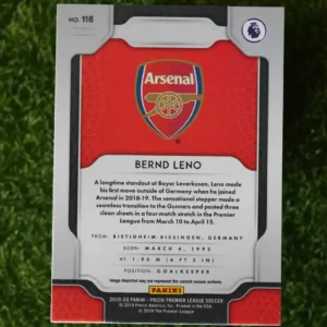 The foundational card from a flagship set! This is the 2019-20 Panini Prizm Bernd Leno base card. The Panini Prizm Premier League set is the benchmark for modern English football cards, and the base cards are the building blocks of any collection. This card features the German goalkeeper, Bernd Leno, during his time at Arsenal. For set builders or fans of the player, the base Prizm card is an essential and affordable collectible. It’s a simple yet iconic card that represents a key moment in the modern hobby.