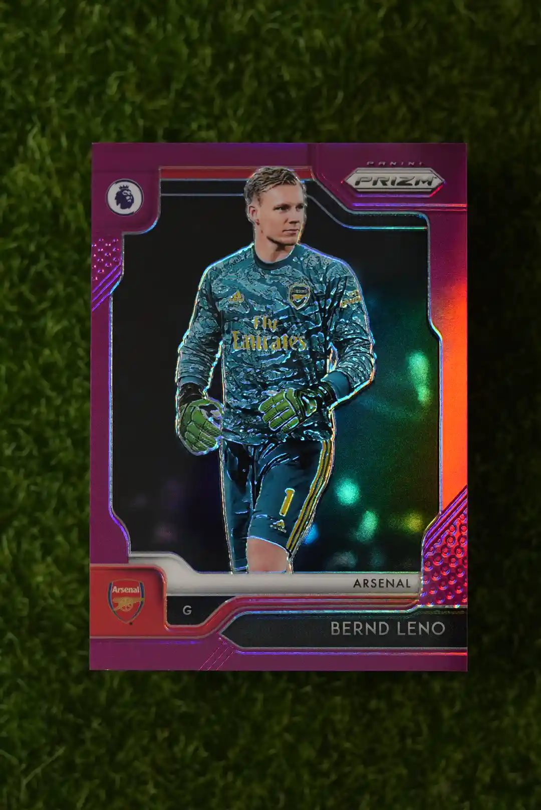 A dazzling and sought-after parallel! This is the 2019-20 Panini Prizm Bernd Leno Hyper Prizm, numbered to 99. The ‘Hyper’ parallel is known for its unique, almost hypnotic pattern that really makes the card stand out. It’s a fan-favorite design that adds a lot of visual appeal to the base card. This numbered parallel of Bernd Leno is a fantastic find for any collector who appreciates the more creative and eye-catching designs that Panini Prizm has to offer. A great card for any Arsenal or Bernd Leno collection.