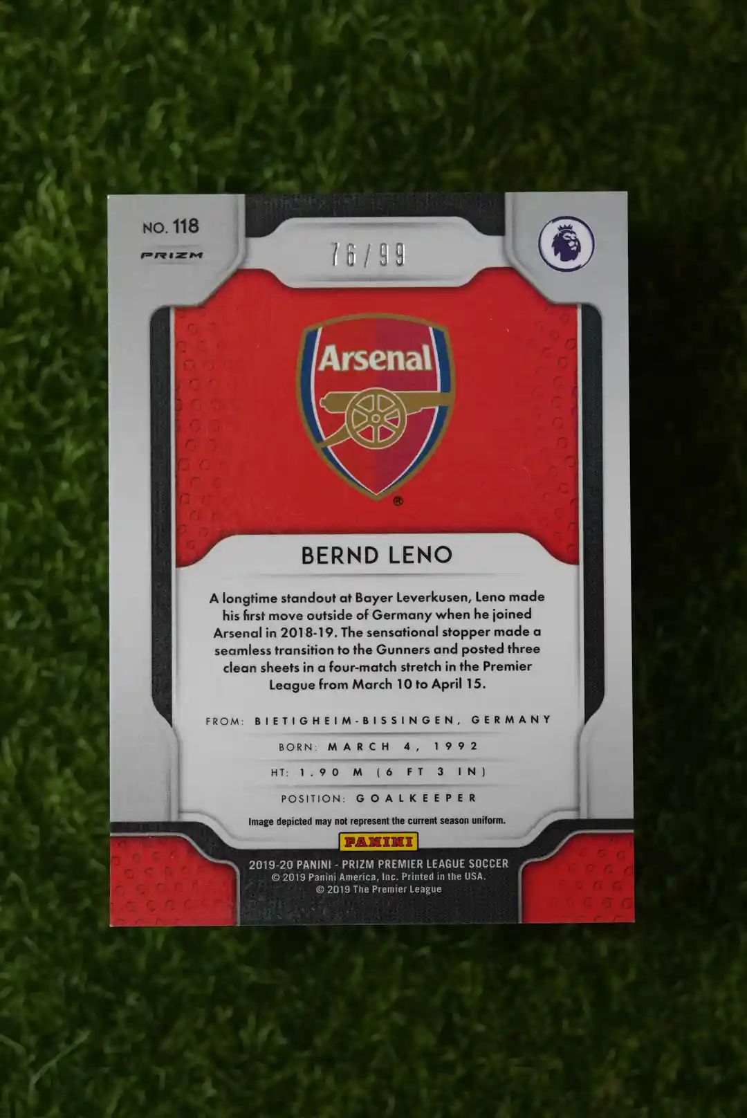 Tags: 2019-20, Arsenal, Bernd Leno, Fulham, Germany, Hyper Prizm, Panini, Prizm, Serial Numbered