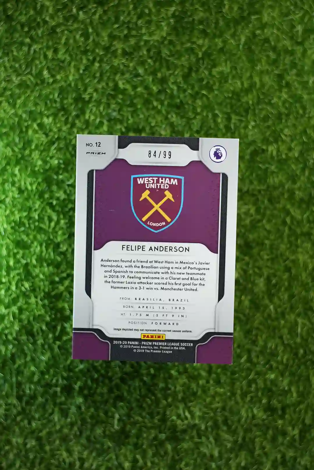 2019-20 Panini Prizm Felipe Anderson Base Prizm, serial numbered to 99 copies.