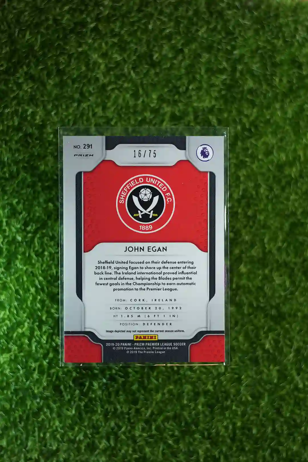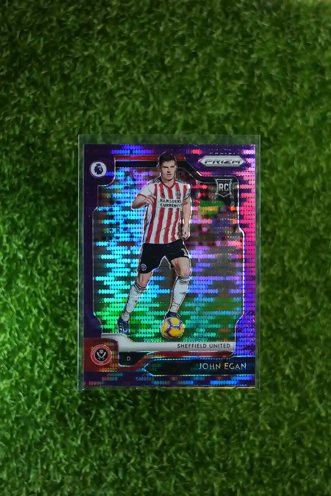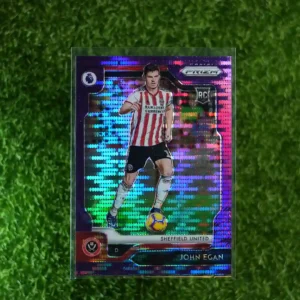2019-20 Panini Prizm John Egan Purple Prizm, short printed to just 75 copies.