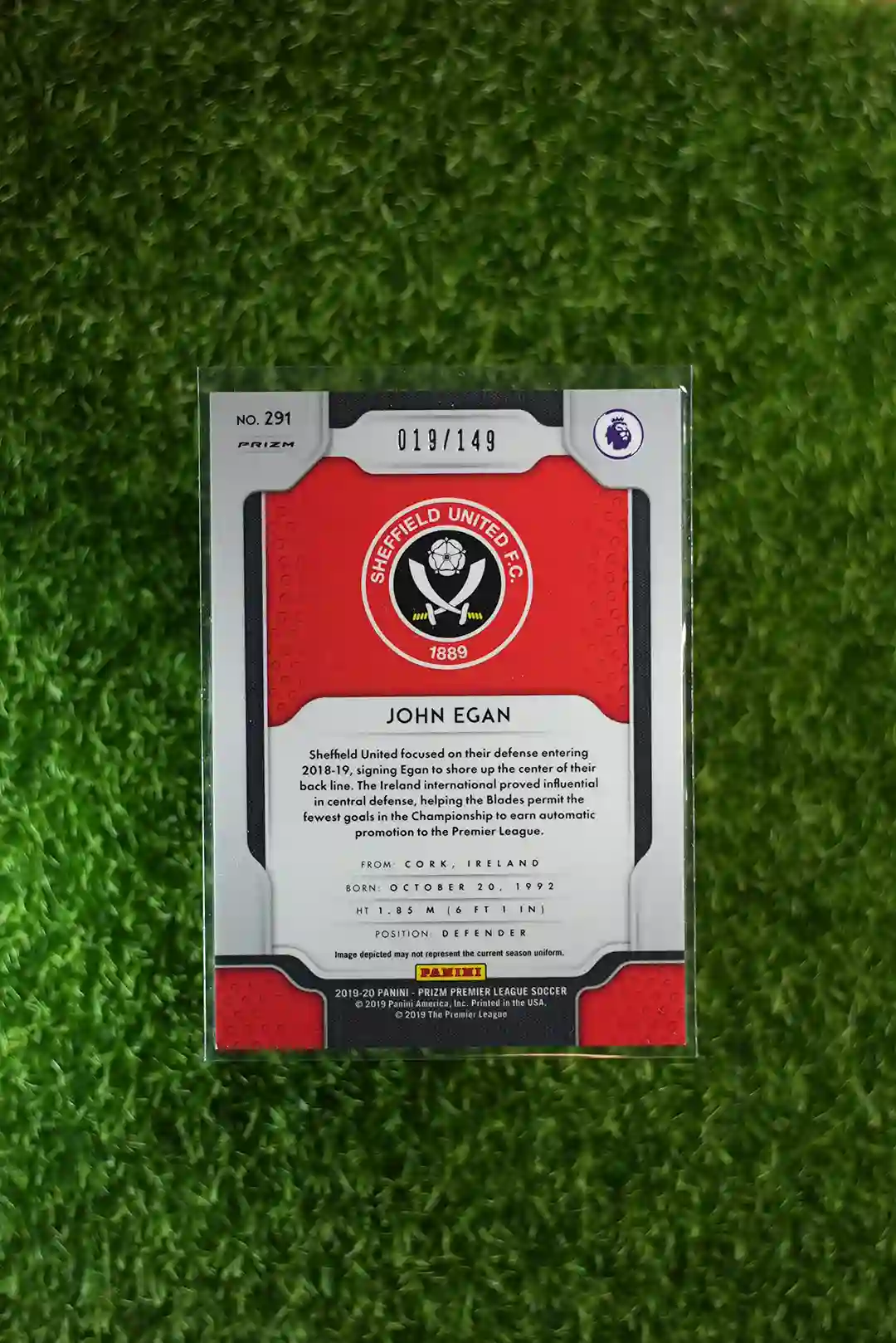 2019-20 Panini Prizm John Egan Red Prizm, serial-numbered to 149 copies.