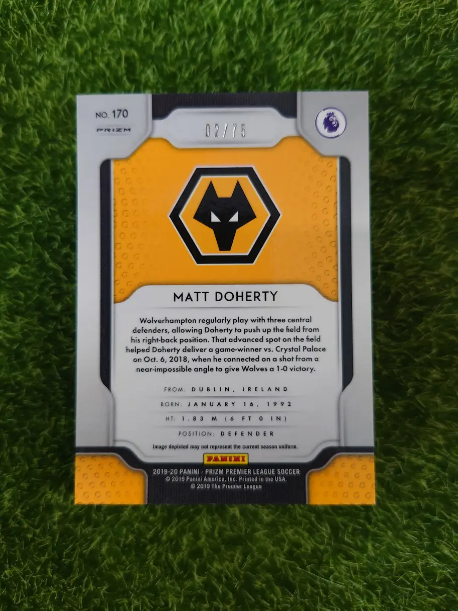 Tags: 2019-20 Panini Prizm, Matt Doherty, Numbered /75, Prizm, RC, Rookie Card, Wolverhampton Wanderers